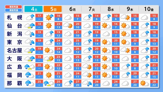 また西日本ではきょう4日、南西諸島・東日本ではあす5日にかけて、落雷や突風、ひょう、局地的には竜巻などの激しい突風に注意してください。