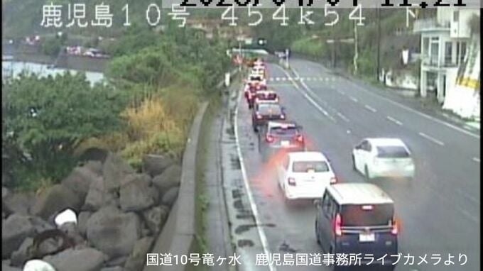 鹿児島国道事務所が鹿児島市吉野町の竜ヶ水に設置したライブカメラでは、鹿児島市中心部向けの道路が先まで渋滞しているのが確認できます。