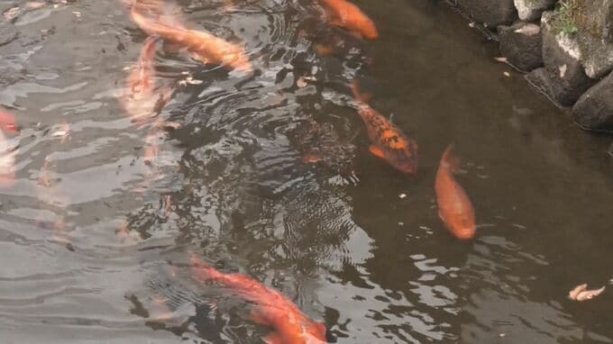 瀬戸川のコイは、再び冬が訪れるまで観光客らの目を楽しませてくれます。