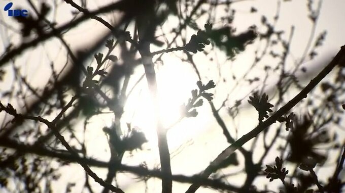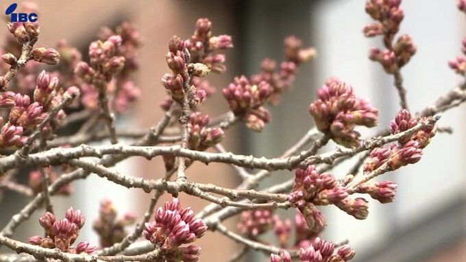 最低気温が平年を1.8度上回る2.8度となった盛岡市にある国の天然記念物・石割桜は4日午前9時半時点でつぼみが膨らんでいるものの開花には至っていません。
