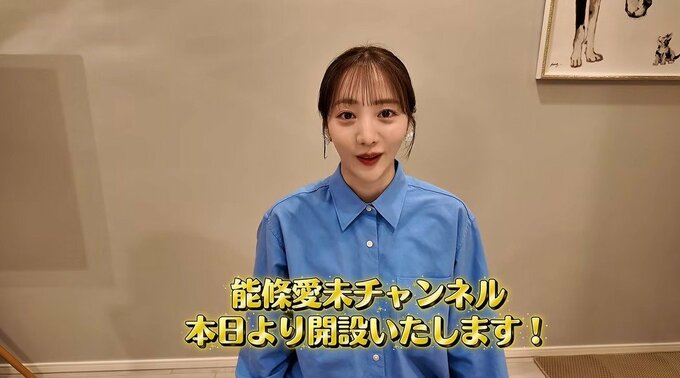 能條さんは、画面の中でいそいそと居ずまいを整え「能條愛未チャンネル 本日より開設いたします!」と元気よく動画をスタートしました。
