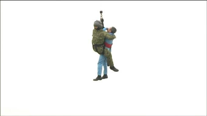 その後、地震で家屋に取り残された人をヘリに引き上げて救助する訓練も行われました。