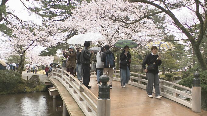 2日から無料開放されている、国の特別名勝・兼六園では、市民や観光客が春を彩る桜をカメラに収めるなどして楽しんでいました。