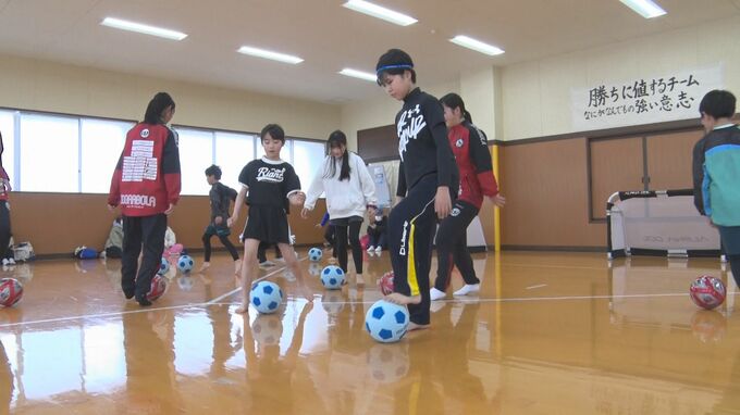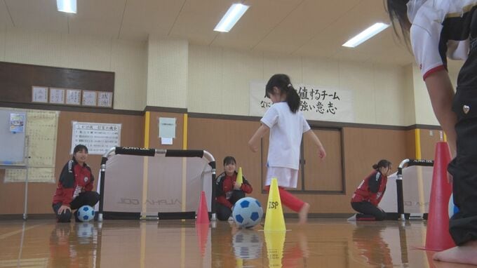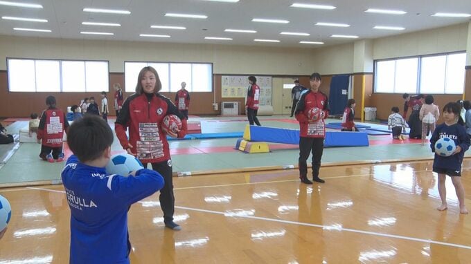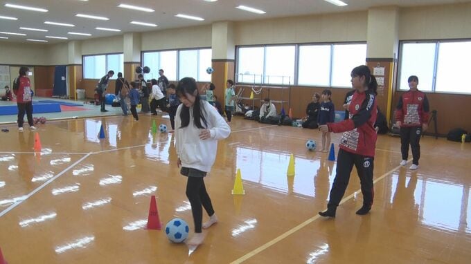 この中で行われたサッカーの体験教室には幼児から小学6年生まで約20人が参加しました。講師を務めたのは女子サッカークラブFCゼブラレディース岩手の選手13人です。