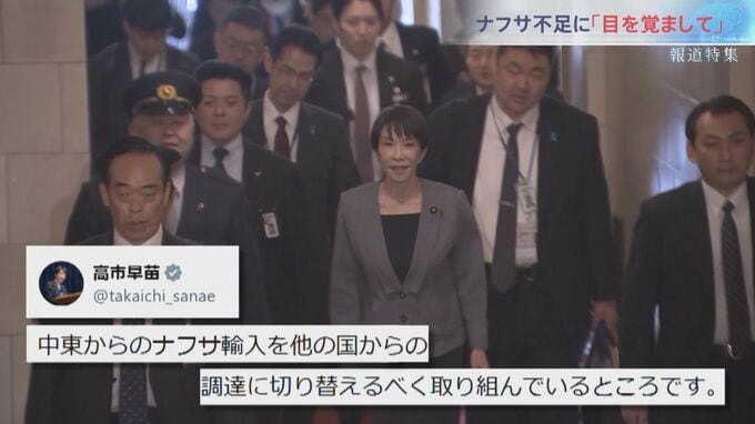 高市総理はナフサについて「直ちに供給が滞ることはない」とSNSで投稿した。