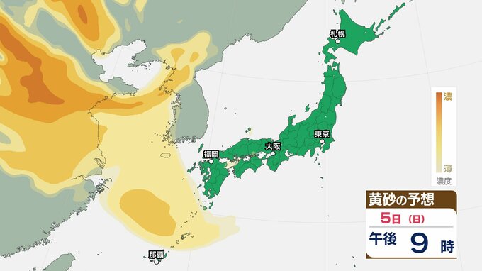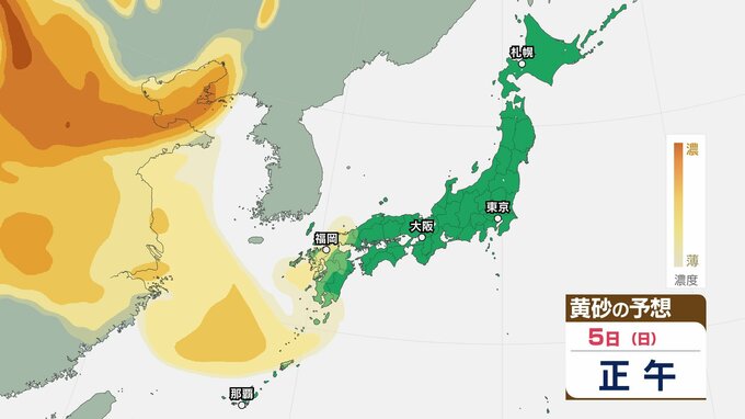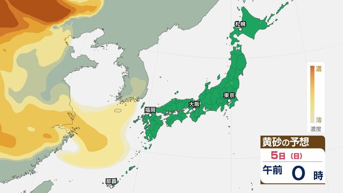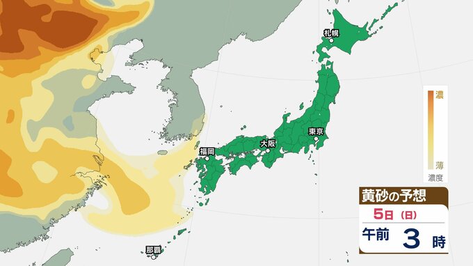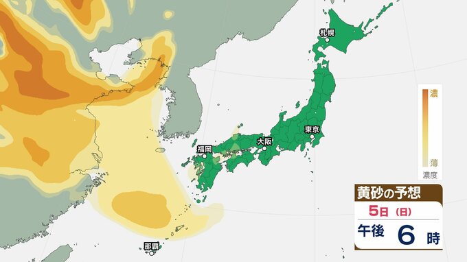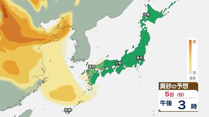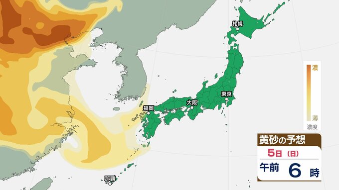 【黄砂情報】きょう5日(日)から九州・中国など西日本の広い範囲で影響の可能性 日本列島に黄砂が飛来か…5日(日)~8日(水)黄砂シミュレーション【気象庁 5日現在】 RSK山陽放送 2026年4月5日(日) 08:48 国内 天気 5日(日) ▶5日(日)~8日(水)黄砂シミュレーション画像 ▶5日(日)~8日(水)黄砂シミュレーション画像