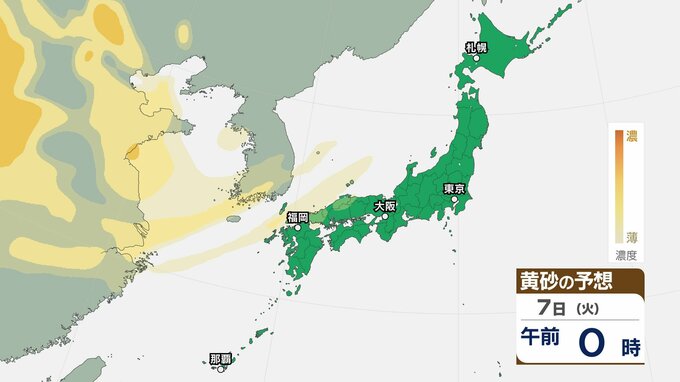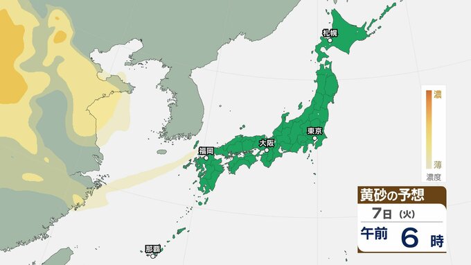 【黄砂情報】きょう5日(日)から九州・中国など西日本の広い範囲で影響の可能性 日本列島に黄砂が飛来か…5日(日)~8日(水)黄砂シミュレーション【気象庁 5日現在】 RSK山陽放送 2026年4月5日(日) 08:48 国内 天気 7日(火) ▶5日(日)~8日(水)黄砂シミュレーション画像 ▶5日(日)~8日(水)黄砂シミュレーション画像