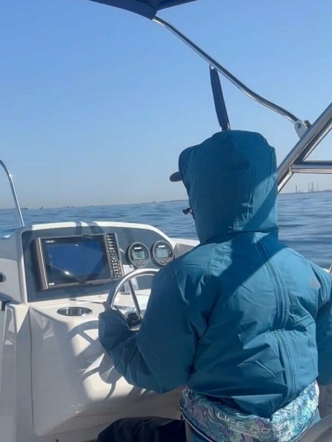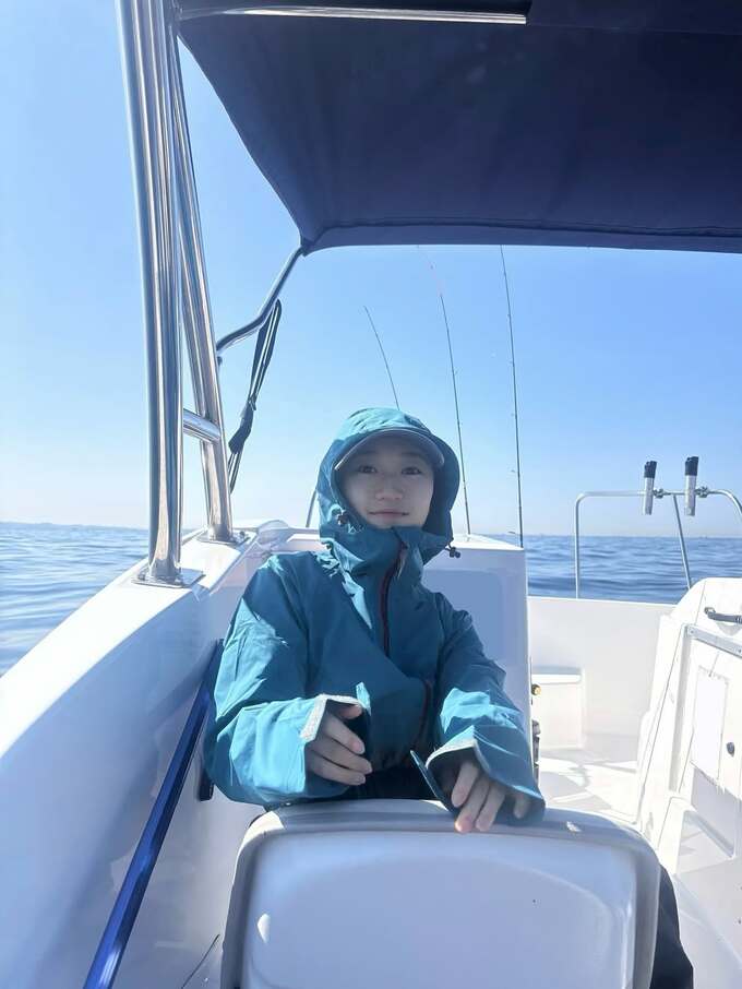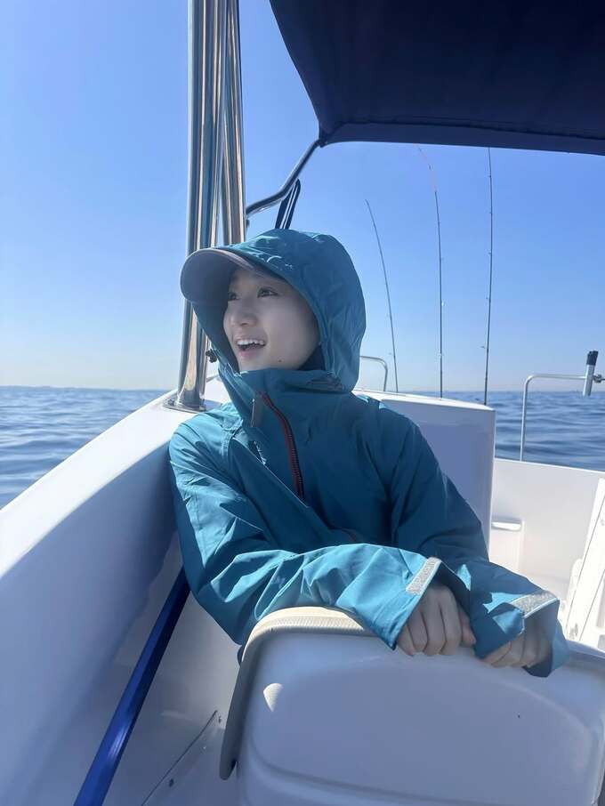 投稿された画像では、横溝菜帆さんが、免許証を手に持つ姿や、青く輝く海で船舶を操縦する様子、愛用する釣り道具などが見て取れます。