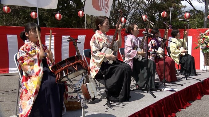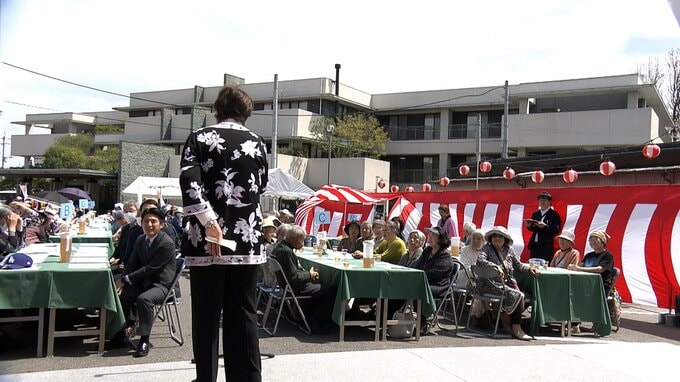 今年で開設10年目を迎えるこの施設では、老人ホームの入居者と光明園の入所者、それに地域の人の交流を図ろうと毎年、さくらまつりが開催されています。満開の桜の下、参加者は民謡ステージや食事を楽しみました。