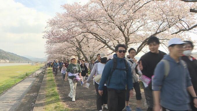 「サクラがものすごく満開できれいで、ほんとに歩くのが楽しいです」