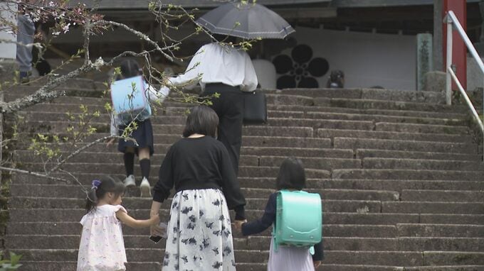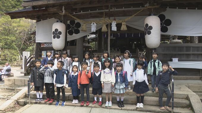 真新しいランドセルを背負い小学校に通い始める、新1年生の学業成就や交通安全を願う神事「勧学祭」が5日、山口市の神社でありました。