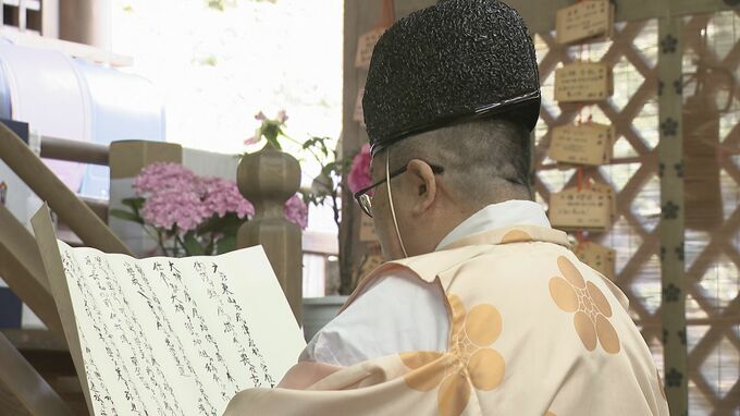 神事では神職が祭壇に置かれた21個のランドセルを清め、6年間の学業成就や登下校などでの交通安全を祈りました。