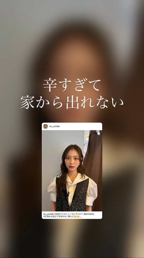災難続きの状況ですが4月5日のストーリーズでは「辛すぎて 家から出れない」と投稿し、花粉症の症状がいかに日常生活に支障をきたしているかを訴えていました。