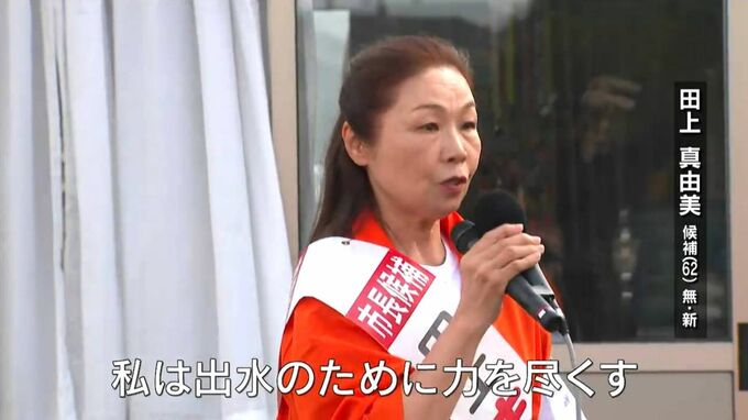 (田上真由美候補(62) 無・新)「これからの出水をつくっていく若い世代につないでいくために今、私たちが頑張らなければならないと思っている。私は出水のために力を尽くして参りたい」