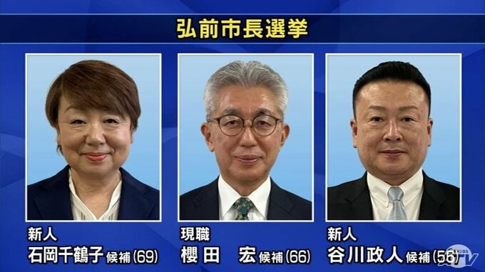 任期満了に伴う、青森県の弘前市長選挙が5日に告示され、現職と新人合わせて3人が立候補を届け出ました。立候補したのは届け出順に新人で元市議会議員の石岡千鶴子 氏(69)現職で3期目を目指す櫻田宏 氏(66)新人で…