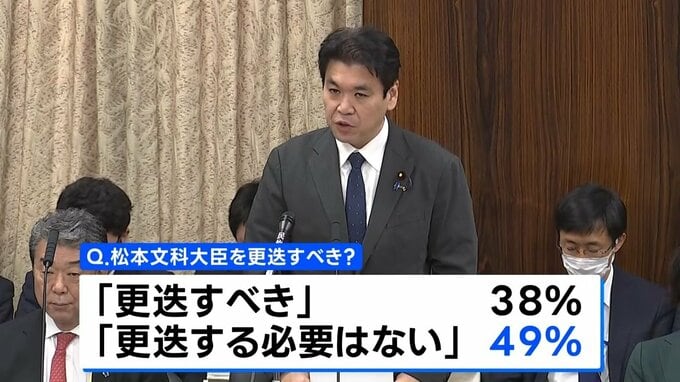 イラン情勢受けガソリン・石油製品の不足への「不安」74% JNN世論調査 TBSテレビ 2026年4月6日(月) 02:26 国内 不倫問題で謝罪 松本文科大臣について 既婚女性との不倫問題を認め、謝罪した松本文科大臣について、高市総理が更迭すべきかどうか聞いたところ、▼「更迭すべき」は38%、▼「更迭する必要はない」は49%でした。