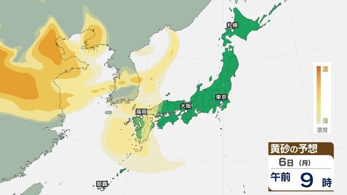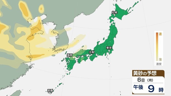 【黄砂情報】九州・中国・四国の西日本の広い範囲で影響の可能性 日本列島に黄砂が飛来か…6日(月)~9日(木)黄砂シミュレーション【気象庁 6日現在】 RSK山陽放送 2026年4月6日(月) 08:00 国内 天気 6日(月) ▶6日(月)~9日(木)黄砂シミュレーション画像 ▶6日(月)~9日(木)黄砂シミュレーション画像