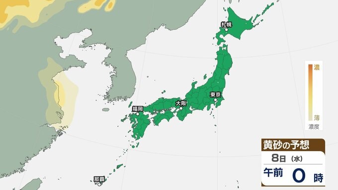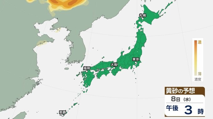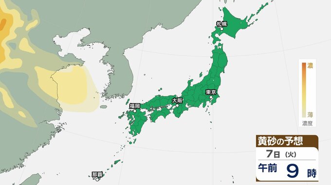 【黄砂情報】九州・中国・四国の西日本の広い範囲で影響の可能性 日本列島に黄砂が飛来か…6日(月)~9日(木)黄砂シミュレーション【気象庁 6日現在】 RSK山陽放送 2026年4月6日(月) 08:00 国内 天気 7日(火) ▶6日(月)~9日(木)黄砂シミュレーション画像 ▶6日(月)~9日(木)黄砂シミュレーション画像 8日(水) ▶6日(月)~9日(木)黄砂シミュレーション画像 ▶6日(月)~9日(木)黄砂シミュレーション画像