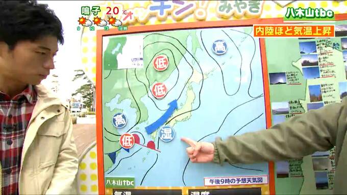 6日(月)の県内は、日中は晴れ間が広がる見込みですが、夜は湿った空気の影響で雲が広がり、一部で雨が降る可能性があります。内陸では気温が20℃前後まで上昇する見込みで、花粉の飛散も多くなりそうです。