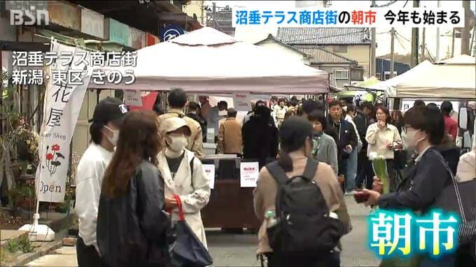 新潟市 中央区の沼垂テラス商店街で月1回の朝市が5日、始まりました。今年から時間を拡大して開催します。