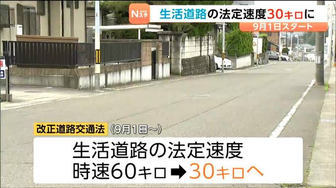 今年9月1日に施行される改正道路交通法では、生活道路の法定速度を時速30キロと定めています。60キロから30キロへと大幅に引き下げられます。