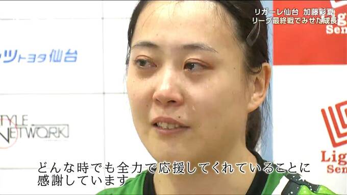 加藤彩夏選手:「はい、本当に、さっきも伝えたんですけど、もうどんなときでも全力で応援してくれてることにすごく感謝しています」