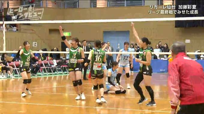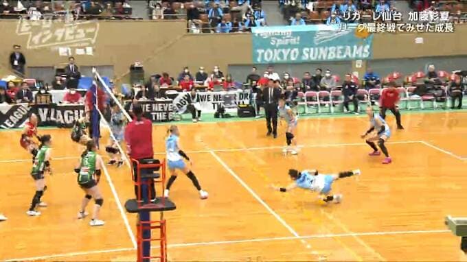 序盤から攻勢に立ち、2セットを連取。さらにボールに食らいつきます。勝利に王手。リガーレのマッチポイントです。