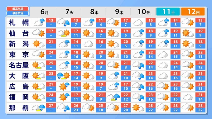 また、低気圧の発達に伴って、北日本から東日本ではあす7日にかけて、西日本と南西諸島ではあす7日は、強風や高波に注意してください。
