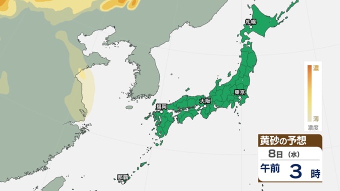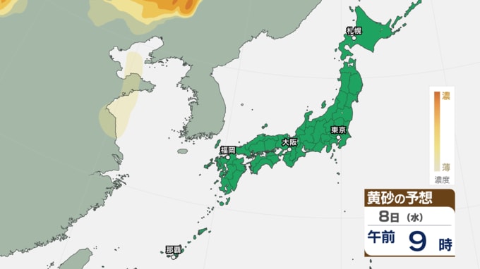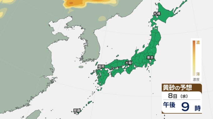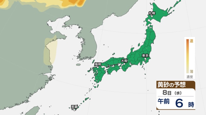 【 黄砂 】 きょう6日は中国や四国、九州など西日本に黄砂が飛来か アレルギーや呼吸器系疾患の人は注意を【黄砂シミュレーション・6日午前11時30分時現在】 新潟放送 2026年4月6日(月) 11:34 国内 天気 8日(水)の黄砂シミュレーション