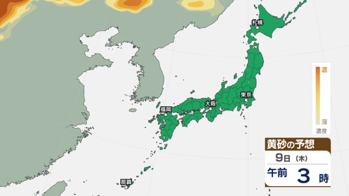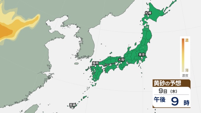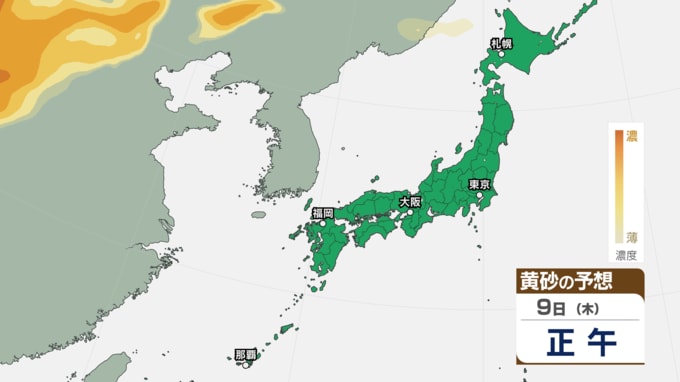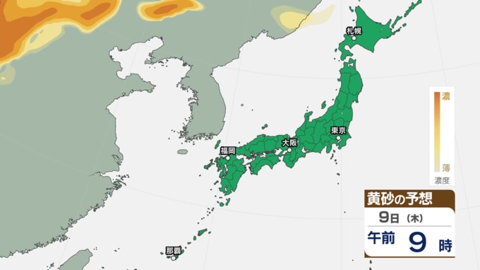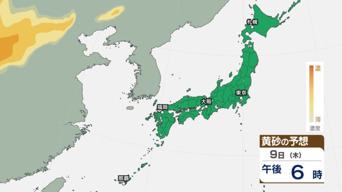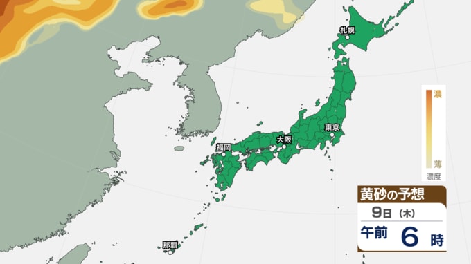 【 黄砂 】 きょう6日は中国や四国、九州など西日本に黄砂が飛来か アレルギーや呼吸器系疾患の人は注意を【黄砂シミュレーション・6日午前11時30分時現在】 新潟放送 2026年4月6日(月) 11:34 国内 天気 9日(木)の黄砂シミュレーション
