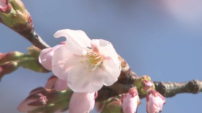 北上市の標本木は5日夕方の時点で2輪ほど花をつけていた状態から、6日朝になって一気に咲き進んだということです。