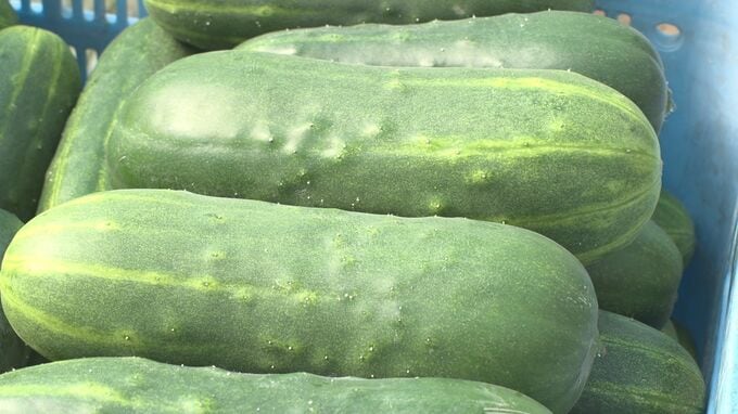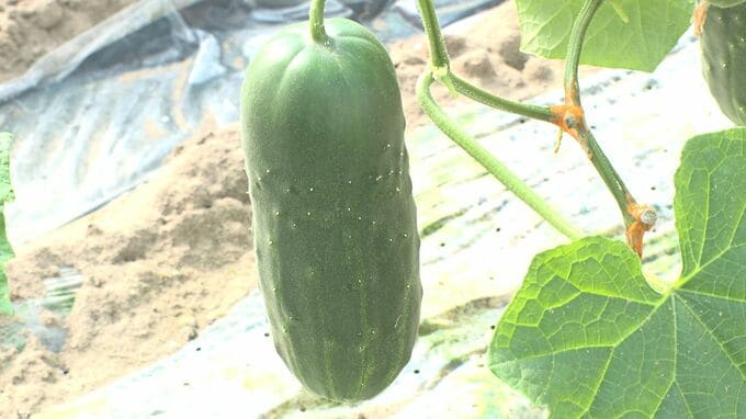 加賀太きゅうりは重さが通常のキュウリの5~6本分、500グラムほどあり、果肉が厚くて柔らかく、噛み応えのある食感が特徴です。