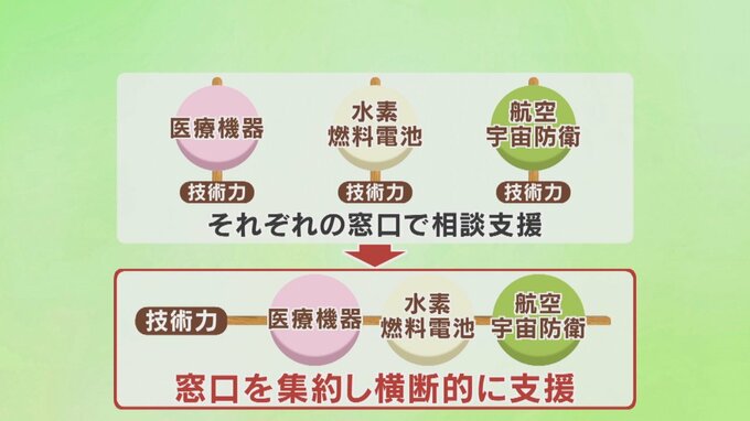 県内の機械電子産業で今後の成長産業とされる「医療機器」「水素・燃料電池」「航空宇宙防衛」のそれぞれに相談窓口を設置していました。