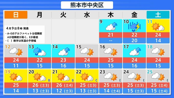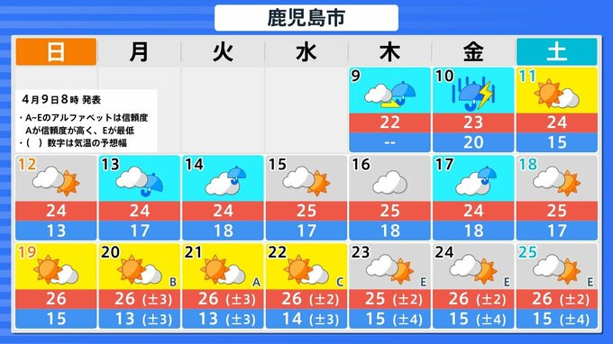 4月15日頃から「この時期としては10年に一度程度しか起きないような著しい高温」になる可能性 気象庁が「高温に関する早期天候情報」発表【東海、近畿、北陸、中国、四国、九州北部、九州南部・奄美】 南日本放送 2026年4月7日(火) 16:30 国内 山口県 福岡県 長崎県 佐賀県 大分県 宮崎県 熊本県 鹿児島県 沖縄県