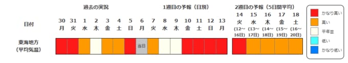 東海地方の向こう2週間の気温は、暖かい空気が流れ込みやすいため高い日が多く、10日頃からはかなり高くなるでしょう。