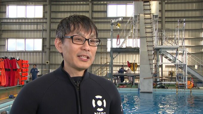 北九州市にある日本サバイバルトレーニングセンターでは縦横14メートル、深さ5メートルのプールに訓練機材を沈めます。