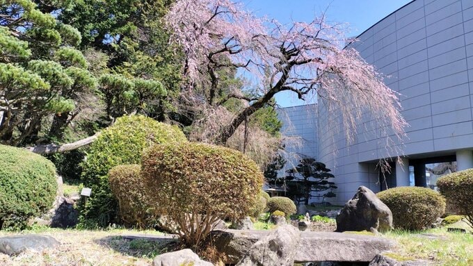 翌々年の社屋の完成やその後の増築で庭園の姿は一部変わったものの、シダレザクラを中心とした往時の面影を残す形で今日まで大切に保存されています。