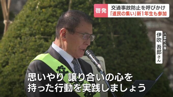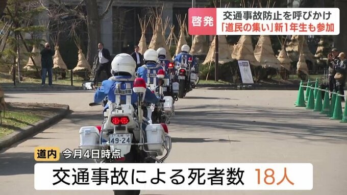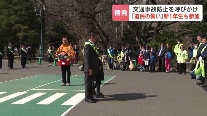 交通安全を呼びかける「道民の集い」には、北海道や警察関係者のほか、この春、入学したばかりの新1年生が参加しました。