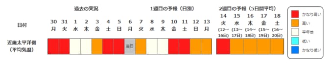 このうち近畿地方の向こう2週間の気温は、暖かい空気が流れ込みやすいため高い日が多く、かなり高い日もあるということです。