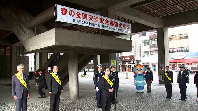 春の全国交通安全運動が全国一斉に始まり、香川県庁でもきょう(6日)出発式が行われました。