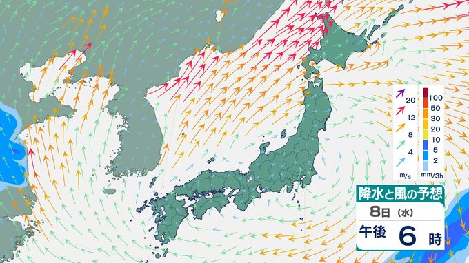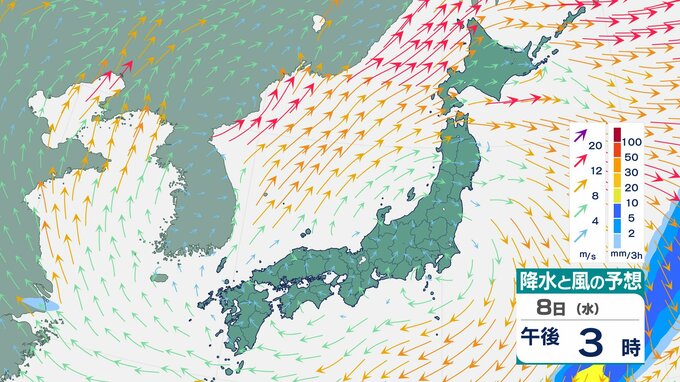 【南岸低気圧】6日(月)7日(火)強い寒気と低気圧が通過、落雷や突風に注意…8日(水)は晴天広がるも北日本は融雪・なだれ、南西諸島は高波に警戒【雨と風のシミュレーション】 チューリップテレビ 2026年4月6日(月) 17:21 国内 天気 8日(水)雨と風のシミュレーション