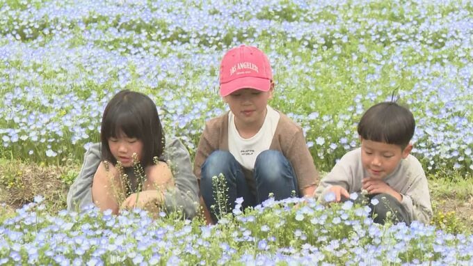 大分県中津市本耶馬渓町の青の洞門付近で、地域の人たちが育てたおよそ80万本のネモフィラが見頃を迎えています。中津市本耶馬渓町の青の洞門付近では、ネモフィラが一気に開花し、いま7分咲きとなっています。201…