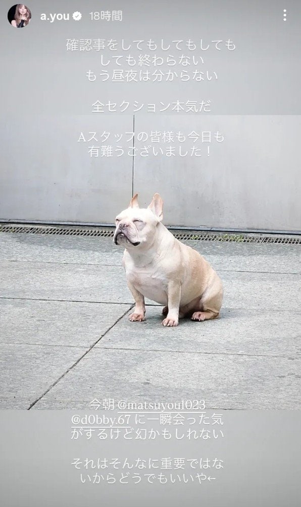 浜崎あゆみさんは「確認事をしてもしてもしてもしても終わらない もう昼夜は分からない」と、投稿。