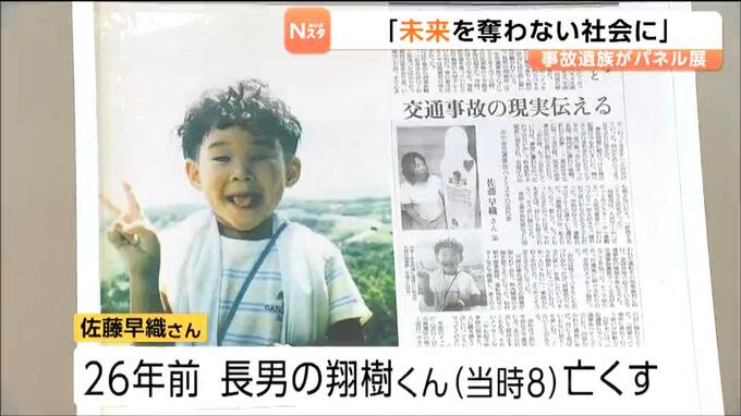 パネルを展示した一人、仙台市の佐藤早織さん。26年前、8歳だった長男の翔樹君を事故で亡くしました。宮城県内の交通事故遺族で作る会の代表を務めています。