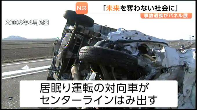 「2008年4月6日の早朝、亘理町内での交通事故により夫は亡くなりました」
