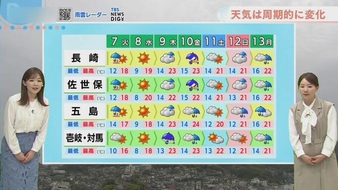7日(火)から8日(水)にかけては日差しが戻り、おおむね晴れる見込みです。ただし、北風が強く吹くため体感気温は下がりそうです。7日(火)の予想最低気温は10℃から14℃、予想最高気温は15℃から19℃の予想で、「お昼でも上着を着ていてちょうどいい」体感になりそうです。