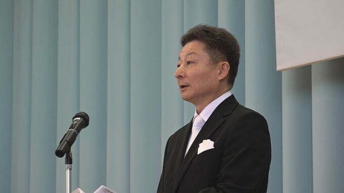 緊張した面持ちで式に臨む蒼昊さんに対し、古道光伸校長は、「心配はいりません。学校には優しい上級生たちがいます。勉強や運動など楽しい事をたくさん見つけて下さい」とお祝いの言葉を贈りました。