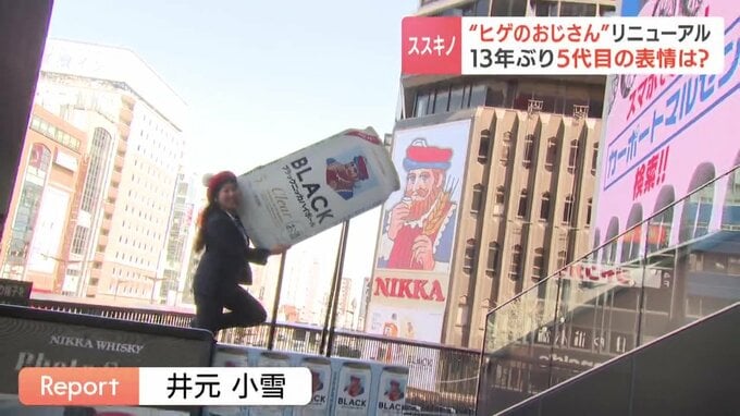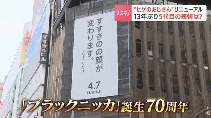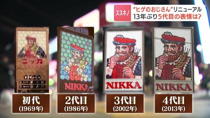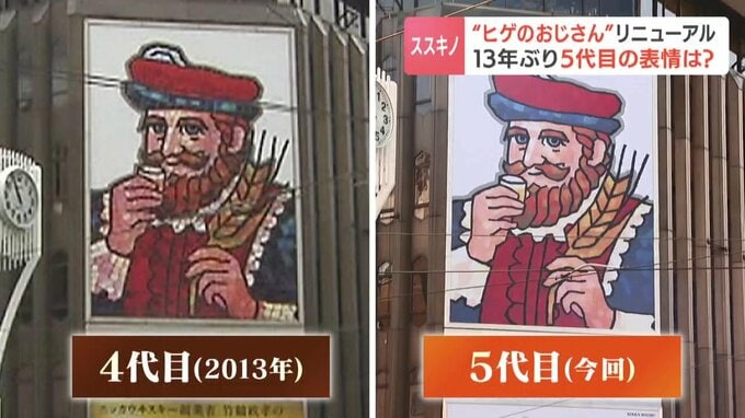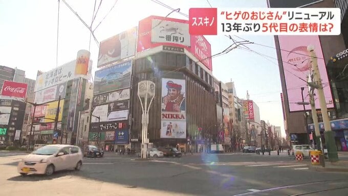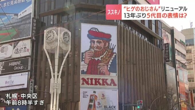 札幌市・ススキノの「顔」で、「ヒゲのおじさん」として知られる看板がリニューアルし、6日、お目見えしました。