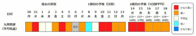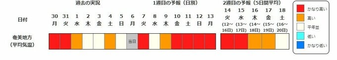 九州南部・奄美地方の気温は、向こう3日間程度は平年並か低い日もありますが、その後は暖かい空気が流れ込みやすいため高く、かなり高い日もあるでしょう。 農作物の管理等に注意してください。また、今後の気象情報等に留意してください。
