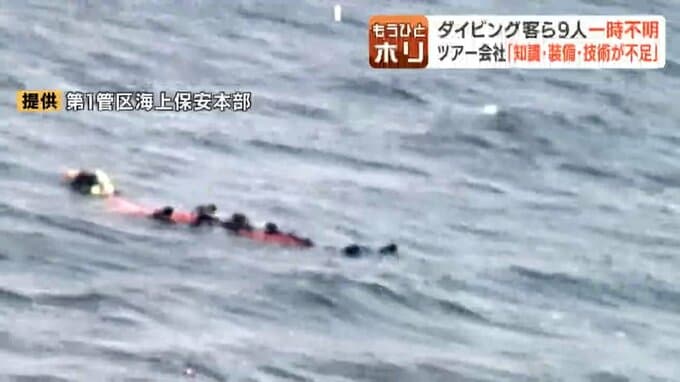 4日、北海道稚内市の沖合いでダイビングをしていた9人が一時行方不明になった今回の事故について、ツアー会社の代表はインストラクターらの「知識と装備の不足が原因となった」と話しました。